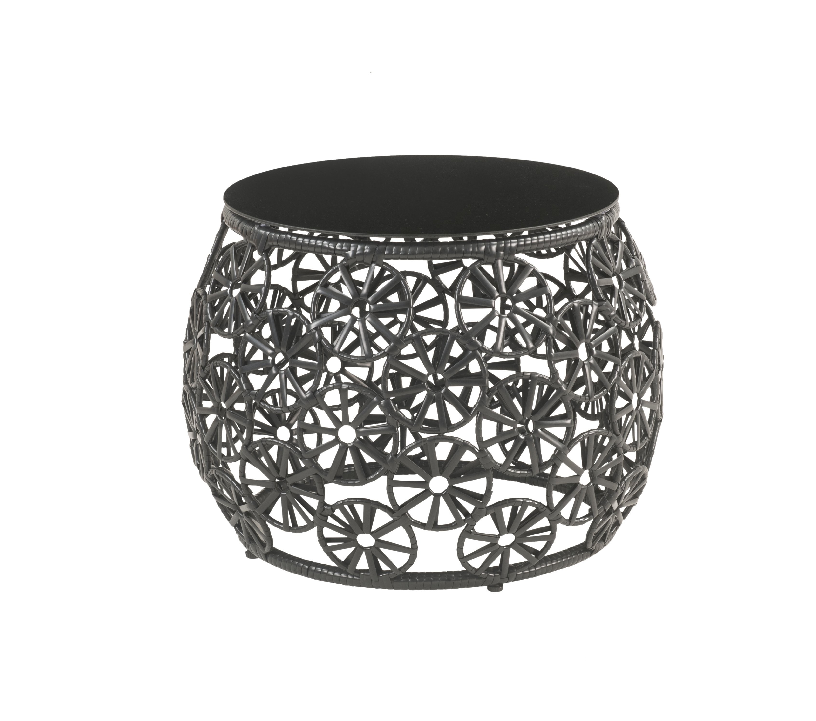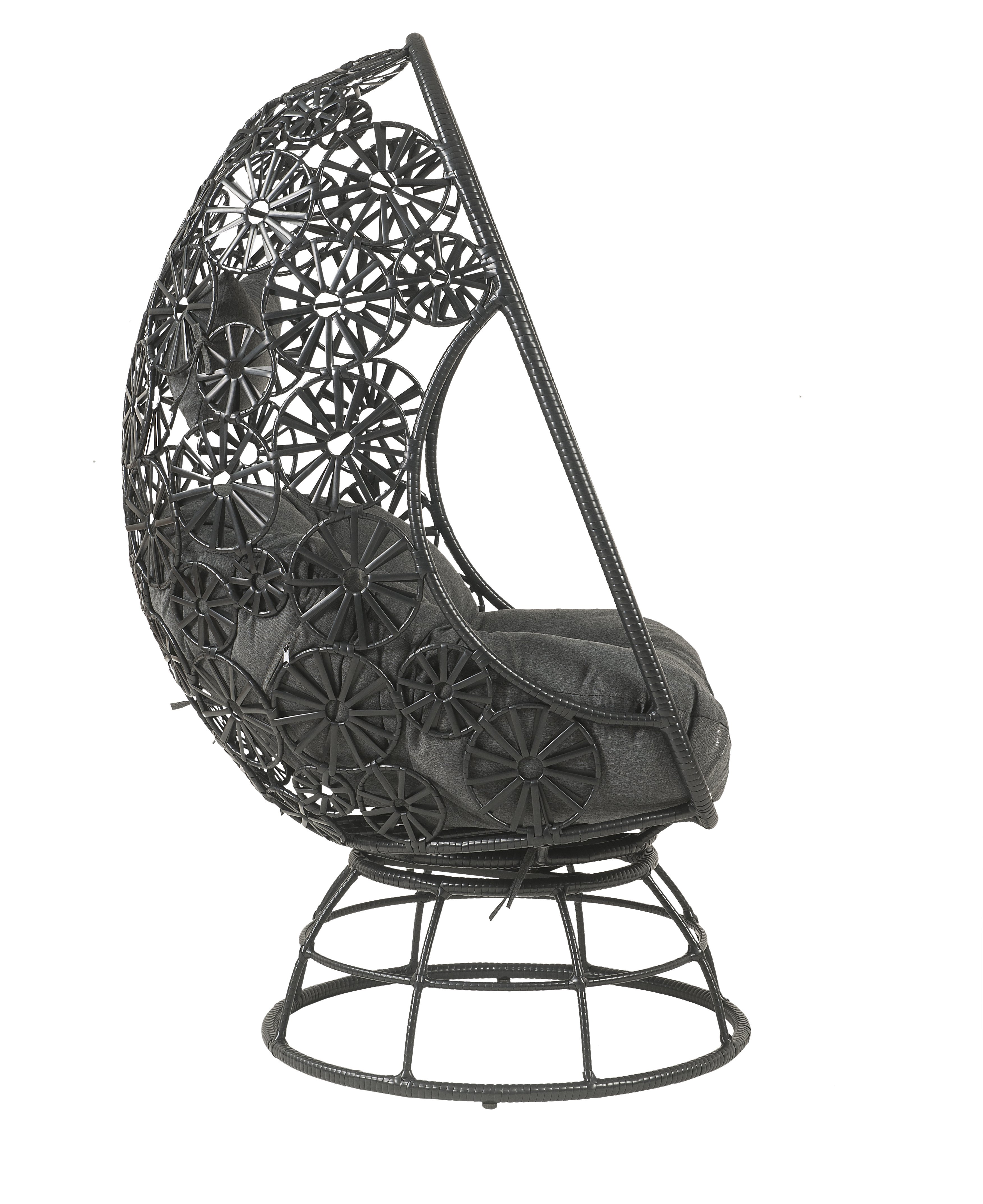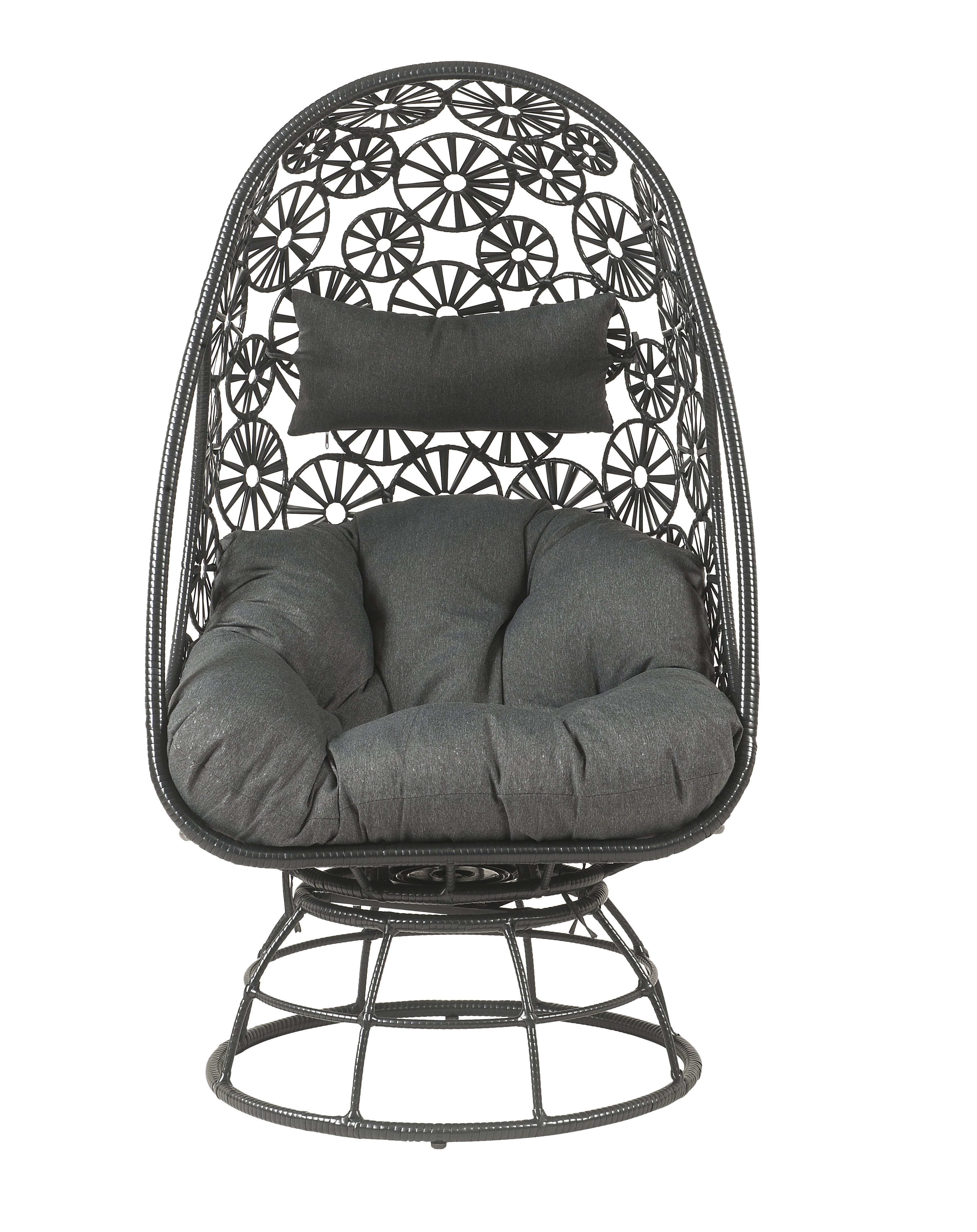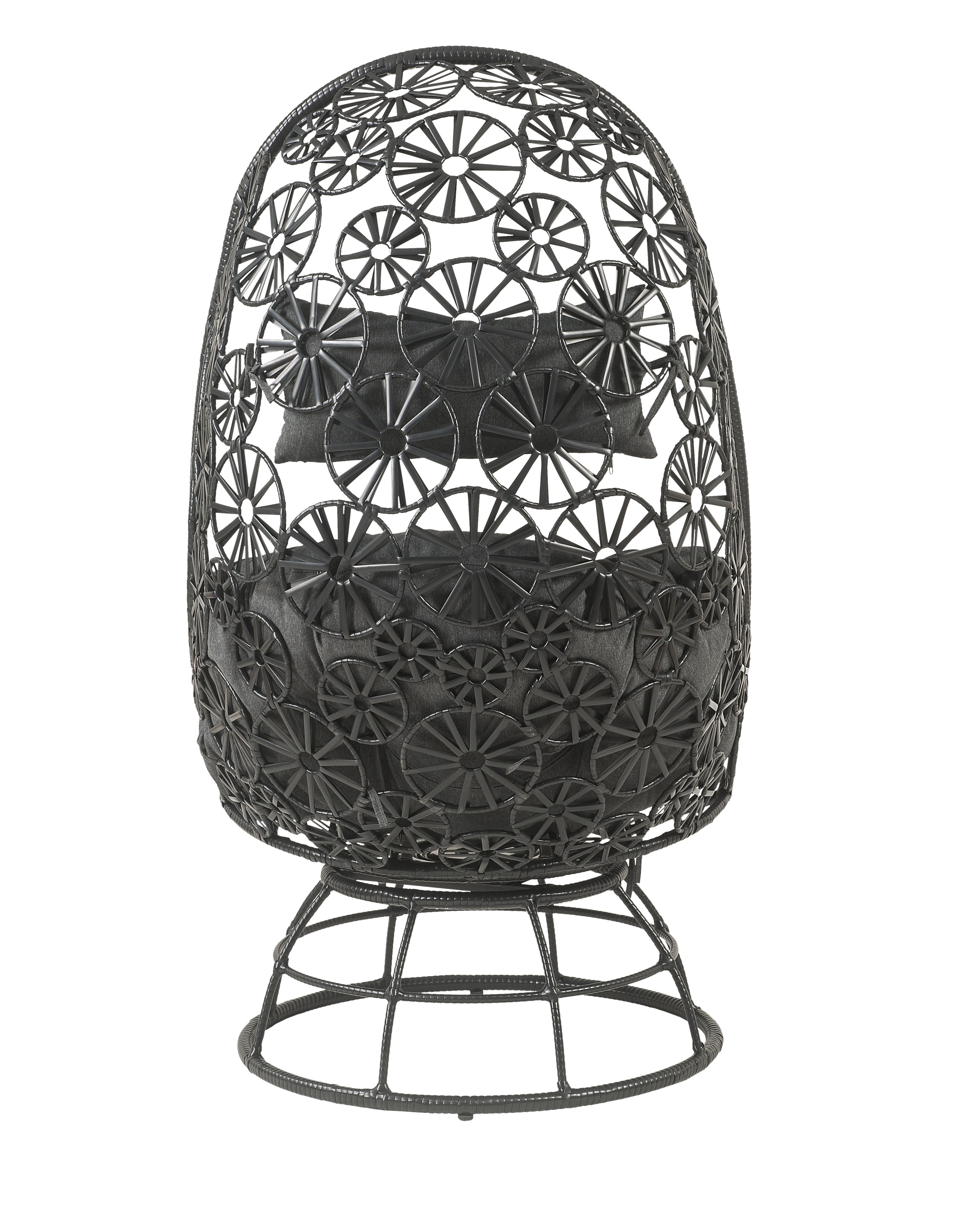 RomanceElegant, airy wicker-weaving work offers a lovely retreat to relax your body and soothe your mind. Black wicker frame with metal base highlights the fabulously airy and sturdy construction. Teardrop-shaped design combines beautiful floral accents to create a sophisticated look. The additional seat cushion will make you feel so comfortable and relaxed lounging in this chair. Complementing side table makes a great place to rest your drink or book with its glass tabletop and stable drum base. Discover a dreamy oasis to stay with Hikre Patio Lounge Chair & Side Table.Product Details•Foam Filled Cushion